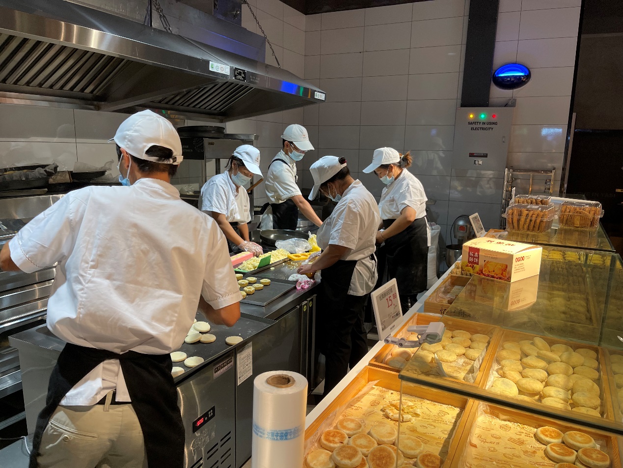 雅斯超市的生鲜在业界有口皆碑,生鲜区最大亮点则是熟食加工区,而熟食加工区的灵魂则是“手工表演”。雅斯的熟食(肉鱼果蔬半成品、面点、烘培、熟食等)大部分是员工在门店现场手工制作,忙碌熟练而又活色生香的美食加工场景,吸引着顾客眼球,也刺激起顾客的购买欲。
